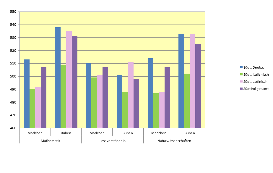 Naturwissenschaften sind die Ergebnisse der Buben bei allen Sprachgruppen