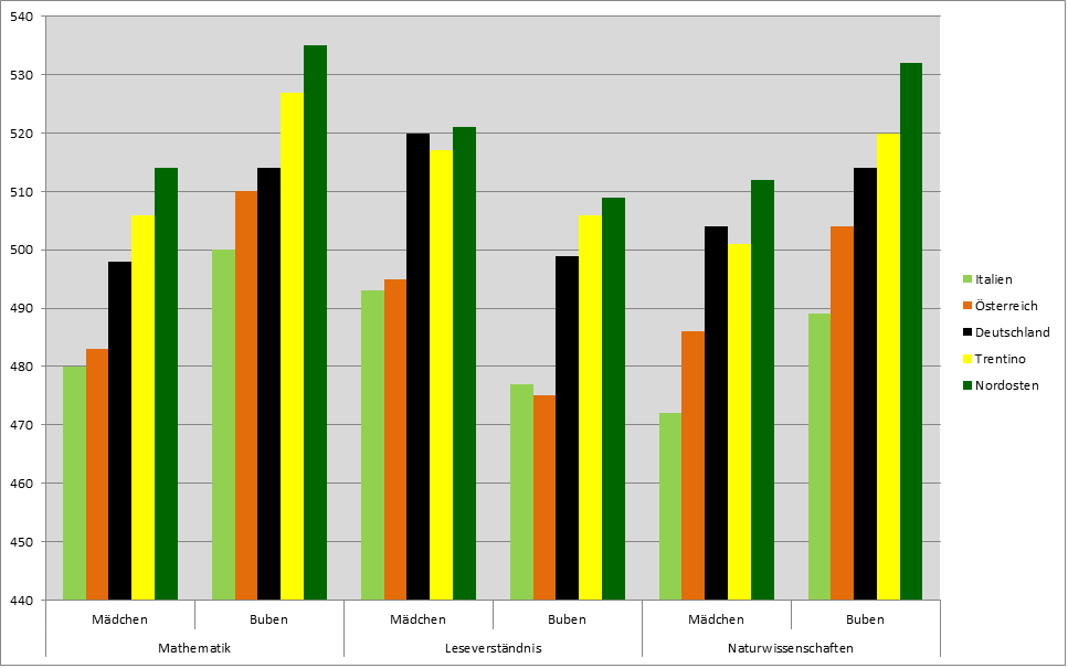besser. Im Leseverständnis liegen außer bei den Ladinern die Mädchen vorne. Der